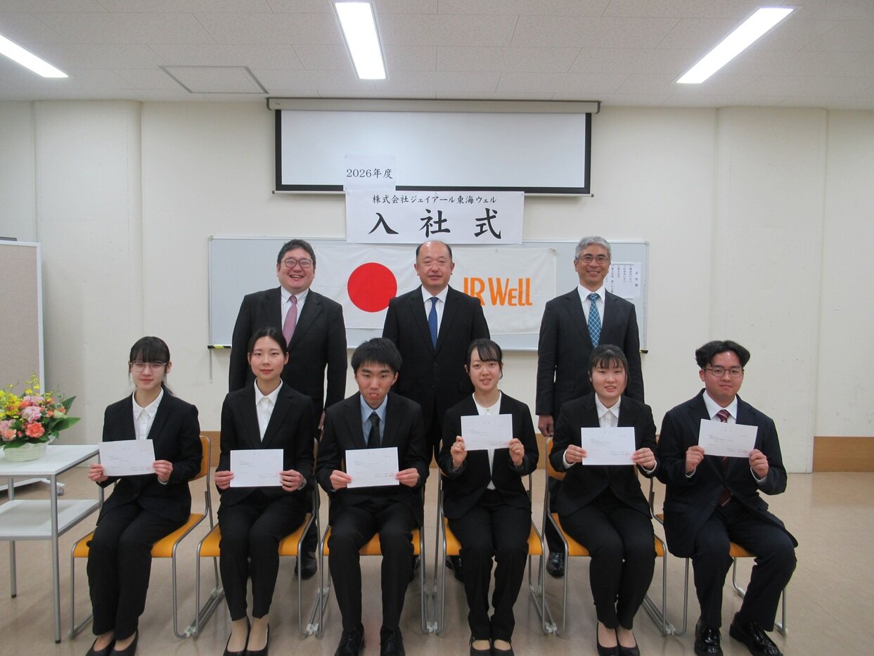 入社式では、澤邊社長・田口取締役から社員一人ひとりへ辞令交付しました。澤邊社長より「仕事とは自分だけでなく多くの人に責任を持つことです。支えてくれた人への感謝を忘れずウェルの社員として歩んでほしい。」と激励されました。