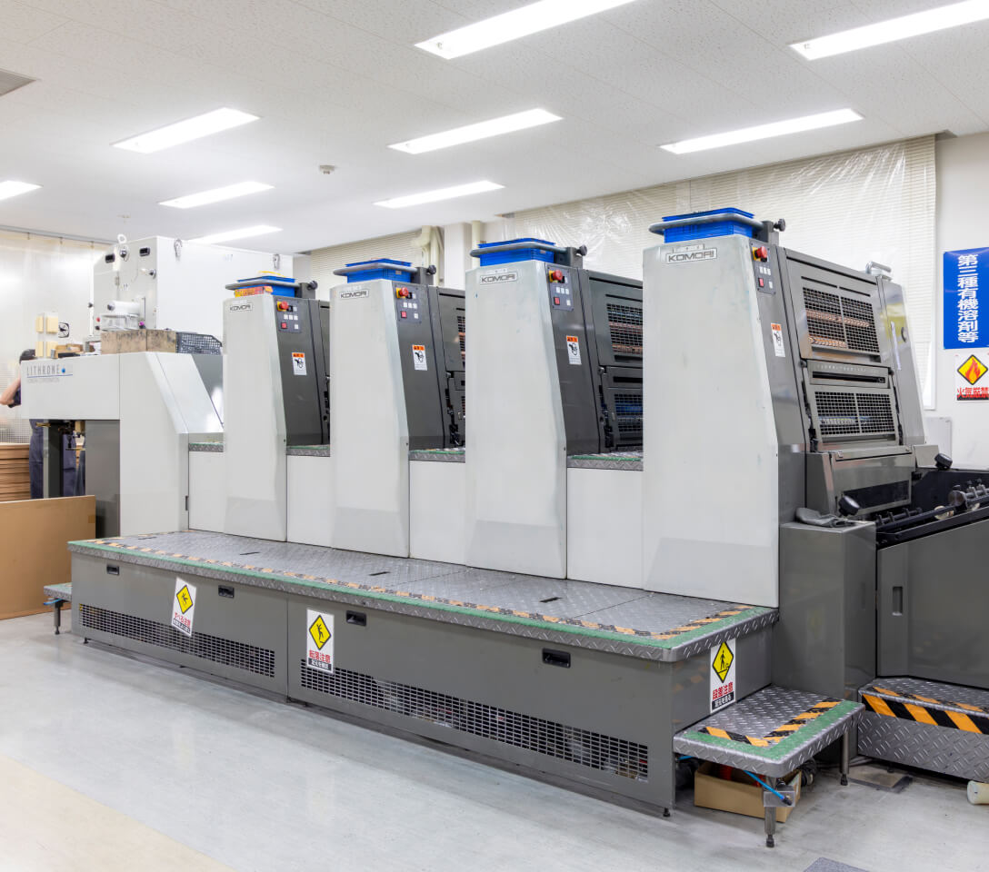 印刷作業は、環境に配慮した水無しオフセット印刷機およびデジタルオンデマンド印刷機により行っています。 -